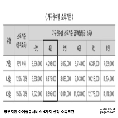 정부지원 아이돌봄서비스 4가지 신청 소득기준